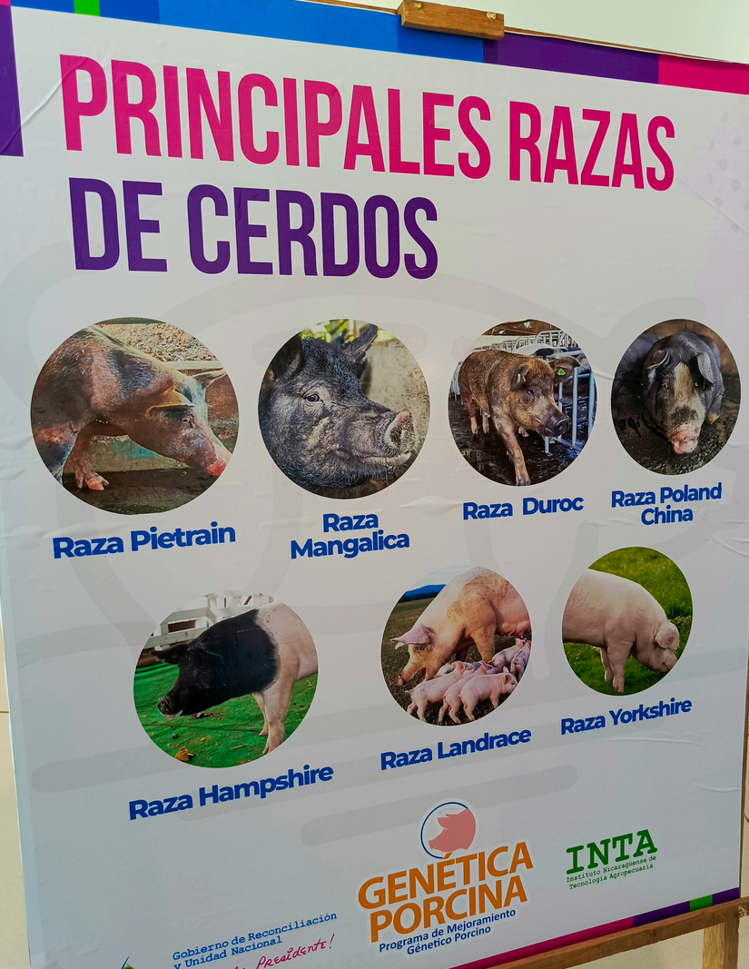 En Nicaragua desde hace tres años se implementa el Programa de Mejoramiento Genético Porcino, que persigue mejorar la calidad de la carne y aumentar el hato de esta especie y con ese objetivo, el INTA presentó el Catálogo de Líneas Genéticas y Razas Porcinas de Nicaragua.
