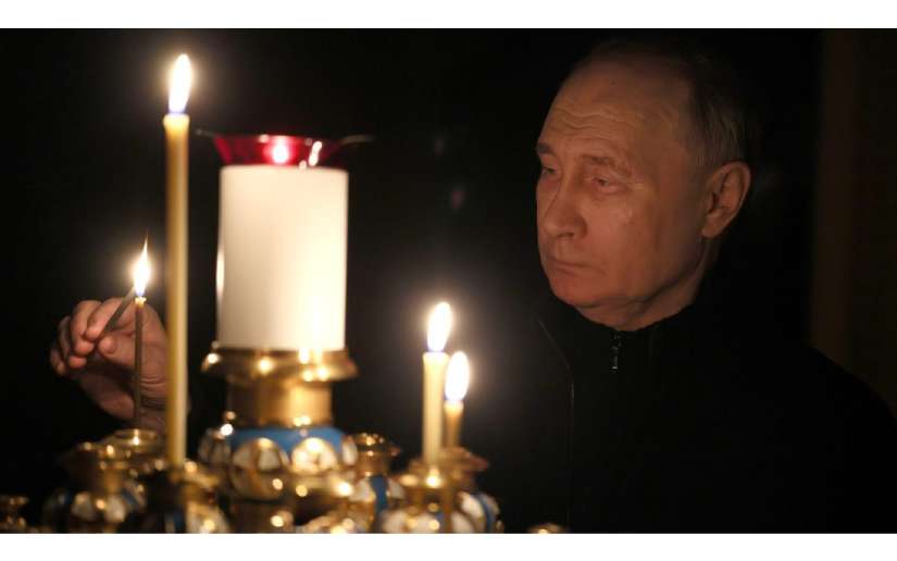 El presidente ruso, Vladímir Putin, visitó este domingo una iglesia de la residencia presidencial de Novo-Ogaryovo, en los alrededores de Moscú, para honrar la memoria de los fallecidos en el ataque terrorista de este viernes en la sala de conciertos Crocus City Hall.