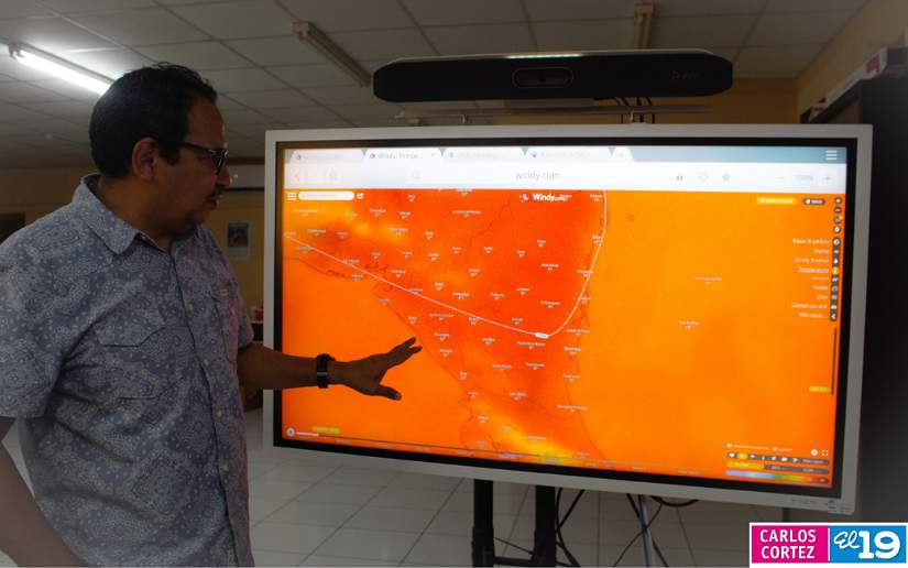 "El anticiclón estará dominando gran parte del territorio con mucho sol, las temperaturas van a incrementar a lo largo de esta semana. Estamos alcanzando temperaturas de 38 grados en el occidente, en la ciudad capital tenemos temperaturas de 37 grados y décimas. En los sectores del norte de Nicaragua las temperaturas están llegando de 35 a 36 grados y 34 y 35 grados en el resto del territorio nacional".