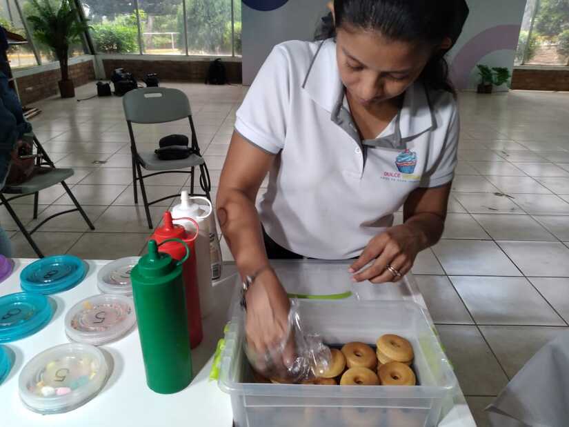 Claudia Cruz, su propietaria, mencionó que las minidonitas pueden acompañarse con glaseados y diferentes topings.