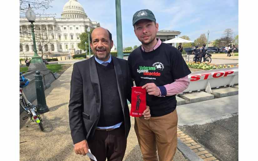 Nuestro pueblo a través de nuestra representación en Washington DC saludó al miembro de la fuerza aérea Larry Hebert para expresar la solidaridad del gobierno que presiden el Presidente Comandante Daniel Ortega y la Vicepresidenta Rosario Murillo al Pueblo palestino y acompañarle simbólicamente en su acto de protesta en contra de la política de su gobierno hacia Palestina. La visita se realizó con Garry Condon, Presidente de la Asociación de Veteranos por la Paz y los miembros de la asociación Frank Corcoren y John Reuwer, quién estuvo en Nicaragua en los años 80.