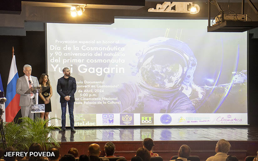En saludo al Día de la Cosmonáutica y el 90 aniversario del natalicio del primer cosmonauta Yuri Gagarin, la Cinemateca Nacional y la Embajada de la Federación de Rusia en Nicaragua proyectaron el documental “Cómo me convertí en cosmonauta”, evento al que asistieron los miembros del gabinete de gobierno, cuerpo diplomático acreditado en el país, el señor embajador de la Federación de Rusia en Nicaragua Alexander Khokhólikov, el compañero Laureano Ortega, asesor presidencial para las inversiones, comercio y cooperación internacional, y la compañera Idania Castillo, codirectora de la Cinemateca Nacional.