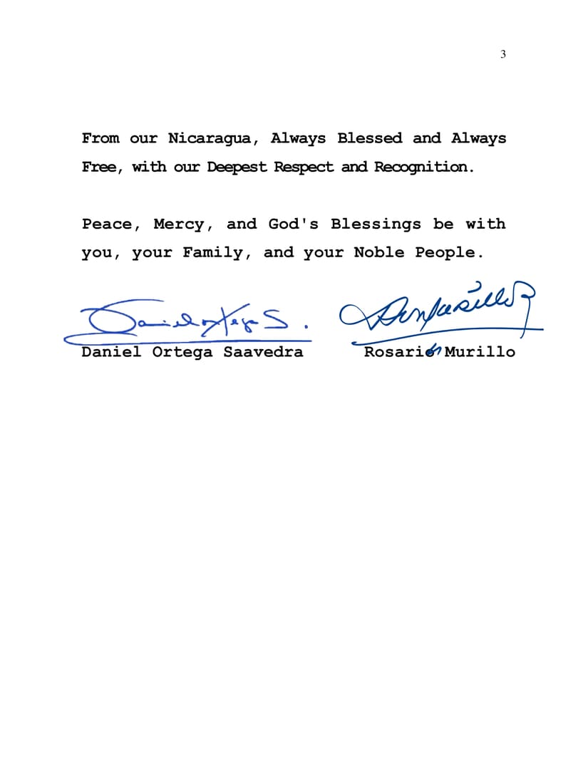 From our Nicaragua, Always Blessed and Always Free, with our Deepest Respect and Recognition.