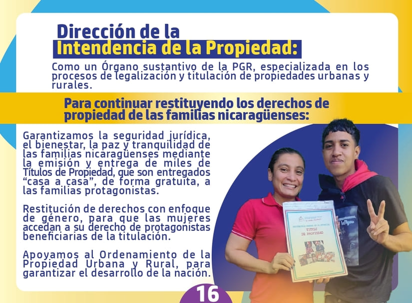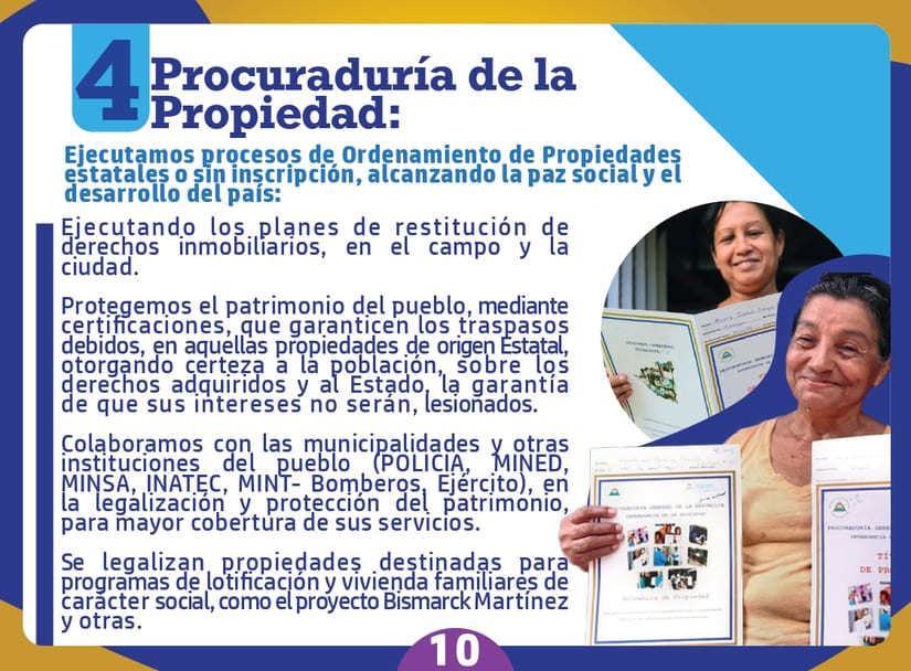 III- Dentro de la Procuraduría General de la República, se encuentra también, la Intendencia de la Propiedad, para garantizar la seguridad jurídica, el bienestar, la Paz y la Tranquilidad de las Familias nicaragüenses.