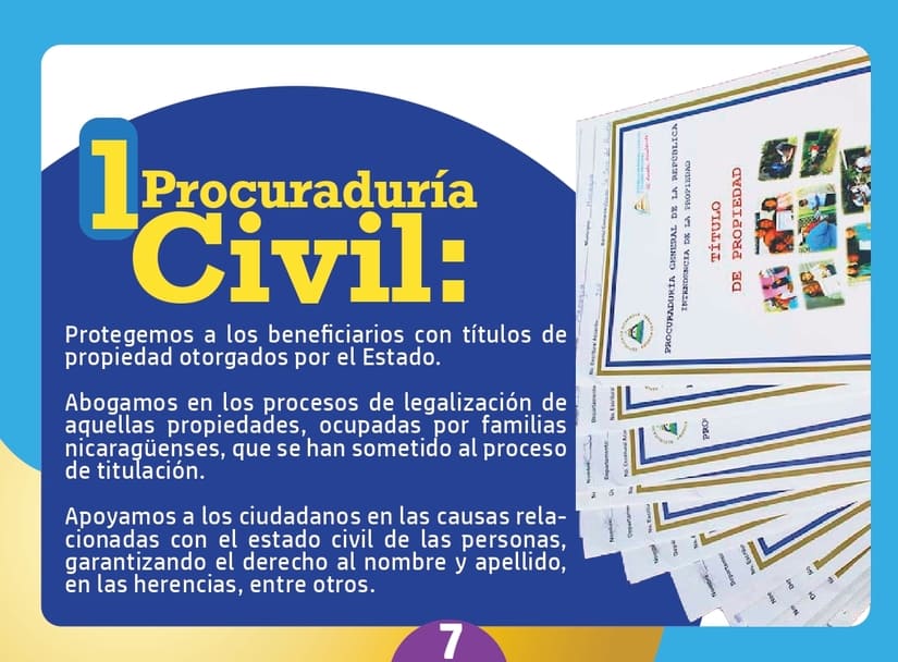 1. Procuraduría Civil: Para proteger a los beneficiarios por Títulos otorgados por el Estado.