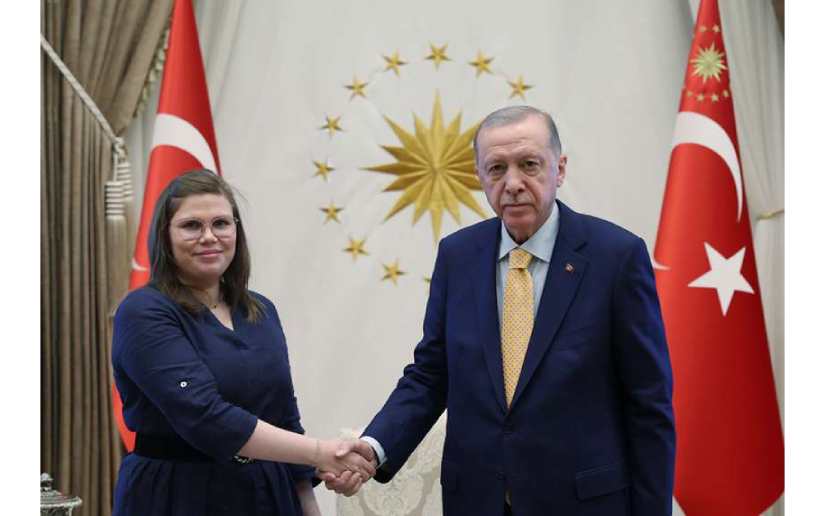 Compañera Tatiana García, Embajadora de Nicaragua en la República de Türkiye junto al Presidente de Türkiye, Recep Tayyip Erdoğan.