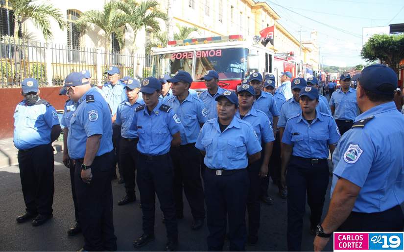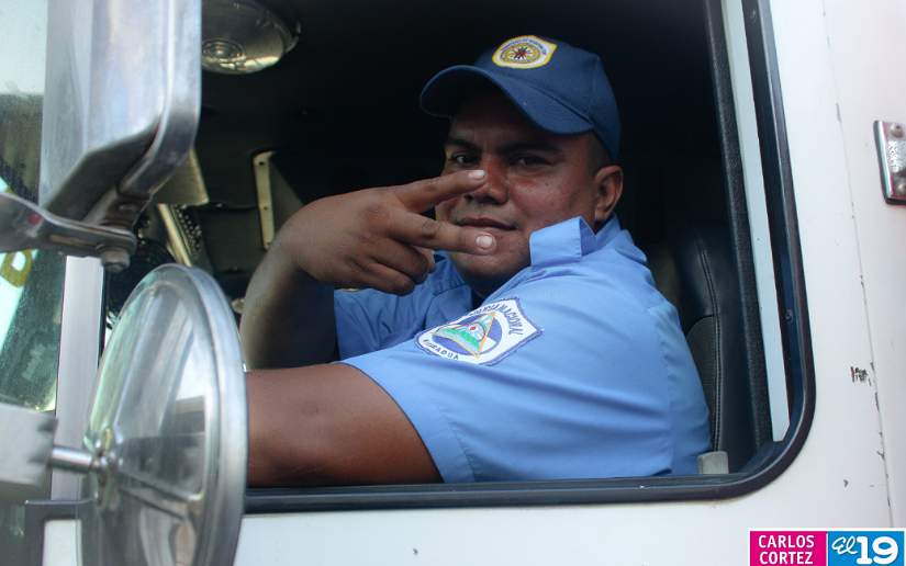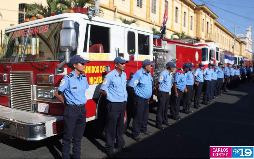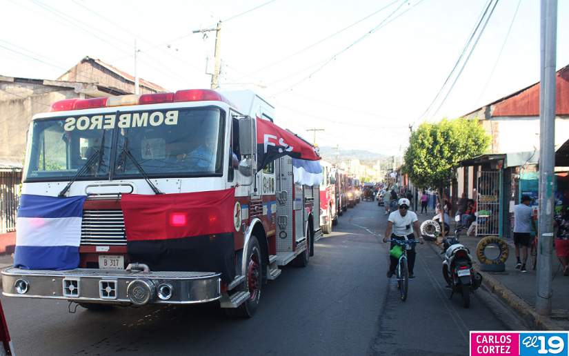 El desfile salió del Tiangue Monimbó hacia el Parque Central donde los camiones de bomberos activaron sus sirenas.