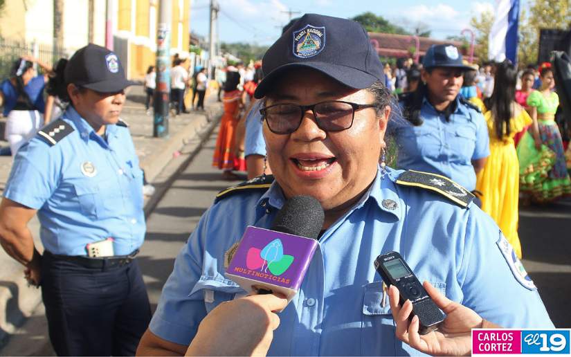 "El día de hoy estamos participando en este desfile colorido celebrando el Día de la Paz, decretado por nuestro Buen Gobierno del Comandante Daniel y la Compañera Rosario. Para nosotros es un día de júbilo, de alegría porque es la paz que tanto ha costado conquistarla y mantenerla", expresó la Comisionada General Elvira Castillo, de la cojefatura de Masaya.