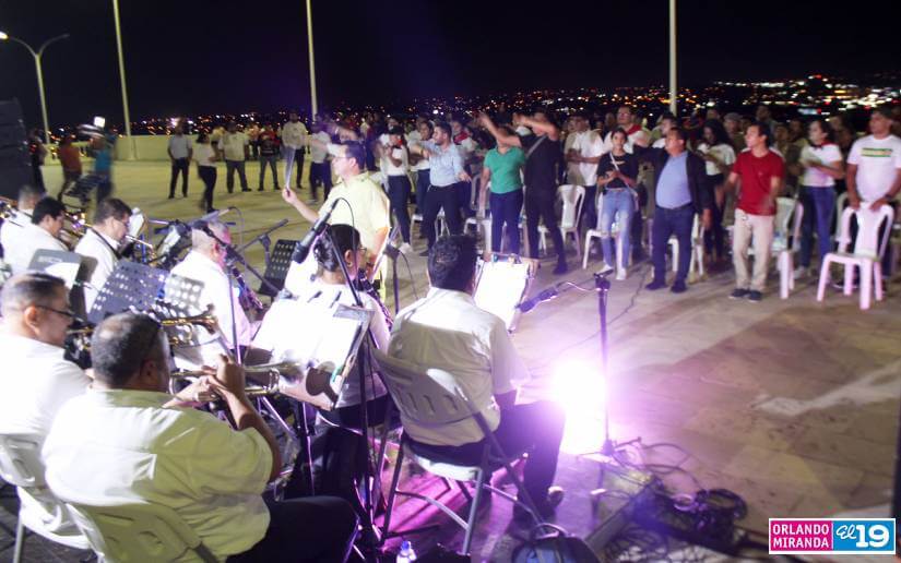 La Juventud Sandinista, por medio del Movimiento Cultural Leonel Rugama, conmemoró las Victorias de la Paz la noche de este jueves, con la celebración de un concierto de música testimonial en la Loma de Tiscapa, Managua.