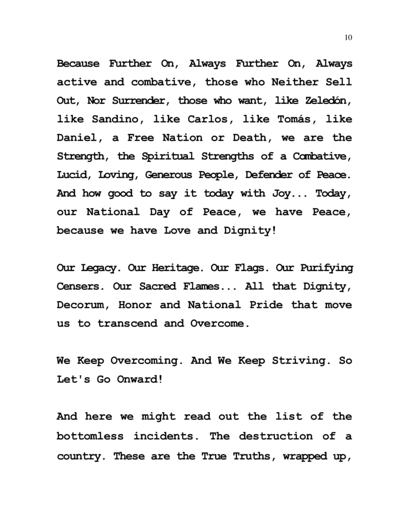 Porque Más Allá, Siempre Más Allá, Siempre activo y combatiente, que Ni Se Vende, Ni Se Rinde, que quiere, como Zeledón, como Sandino, como Carlos, como Tomás, como Daniel, Patria Libre o Morir, estamos en la Fuerza, en las Fortalezas Espirituales de un Pueblo Combatiente, Lúcido, Amoroso, Generoso, Defensor de la Paz. Y qué bueno decirlo hoy con Alegría... Hoy, Día Nacional de la Paz, tenemos Paz, porque hay Amor y Dignidad !