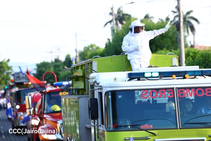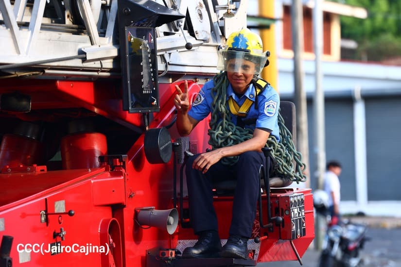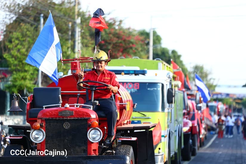 "Por eso hoy los Bomberos Unidos de nuestro Ministerio del Interior, los bomberos militantes del Frente Sandinista estamos aquí acompañando al pueblo, a la juventud, haciendo este carnaval de alegría, de paz, diciéndole a nuestro pueblo, que hoy más que nunca, hay libertad, hay alegría, armonía gracias al Frente Sandinista, a la buena dirigencia de nuestro partido, el Comandante Daniel, la Compañera Rosario, que siempre están velando por la seguridad, la vida y tranquilidad del pueblo", exclamó.