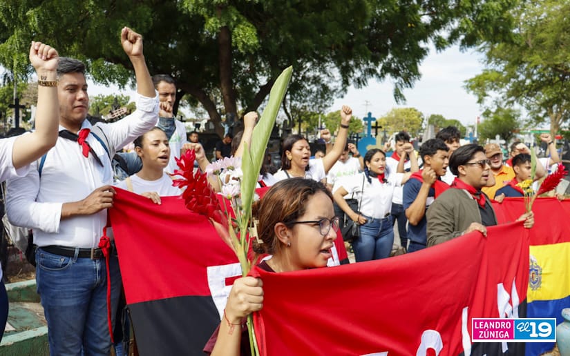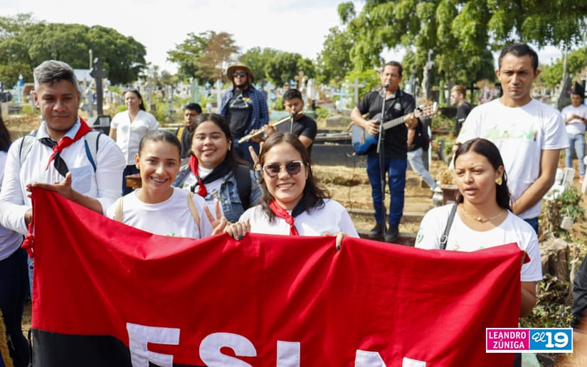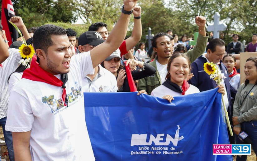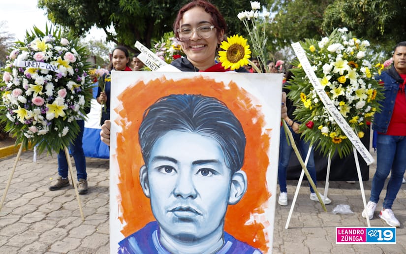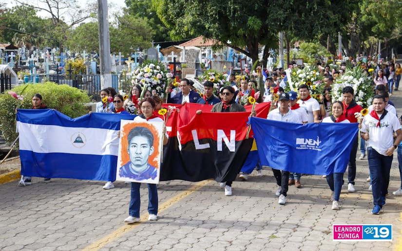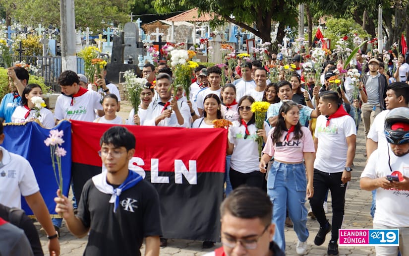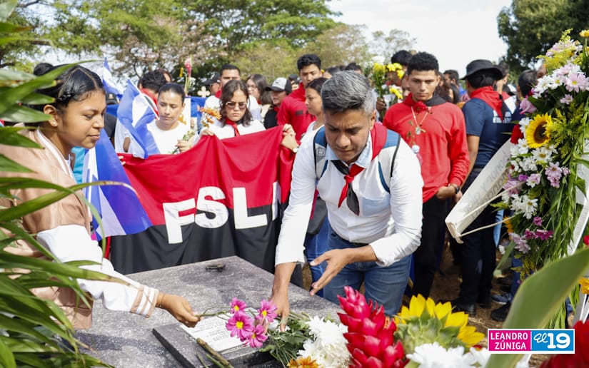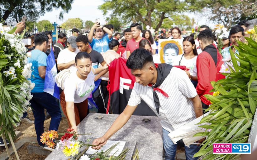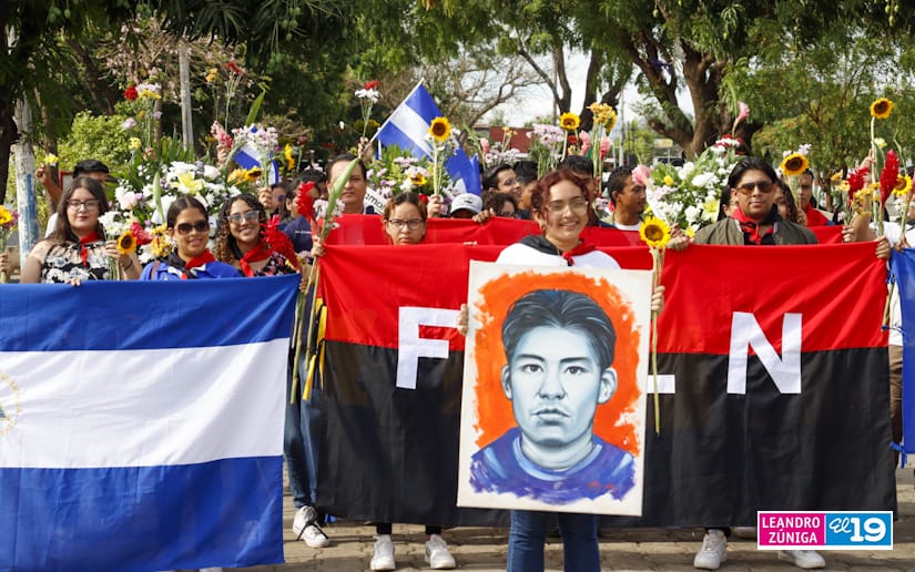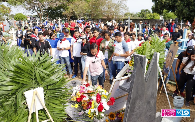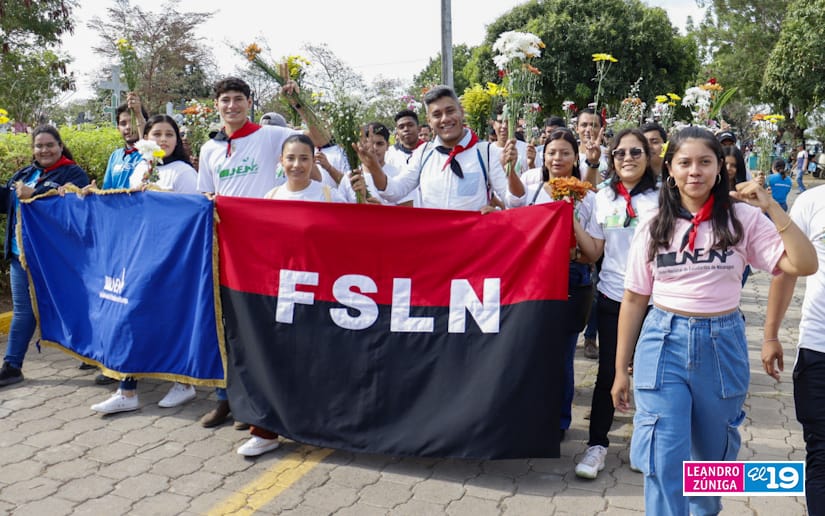Con ofrendas florales, música y consignas revolucionarias universitarios de los recintos de la UNAN-Managua y otras universidades miembros del CNU, le rindieron homenaje y honraron su memoria.