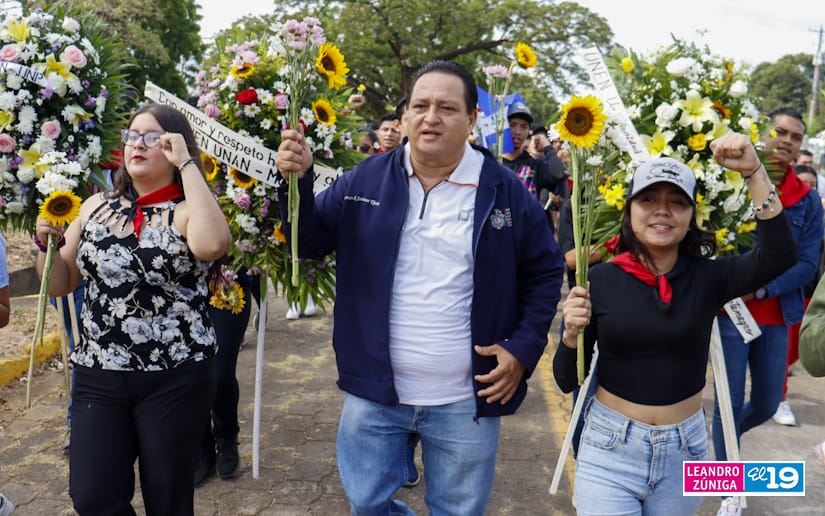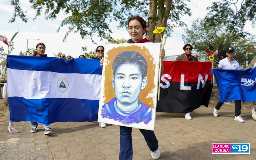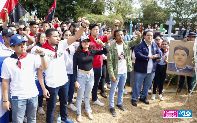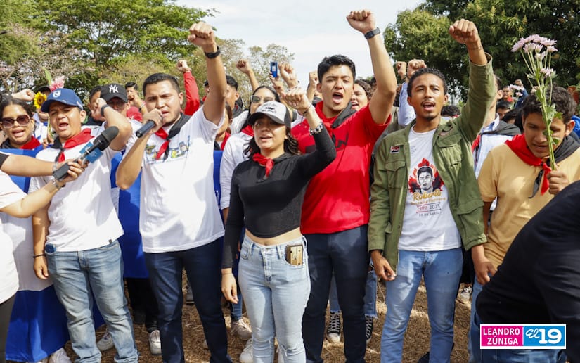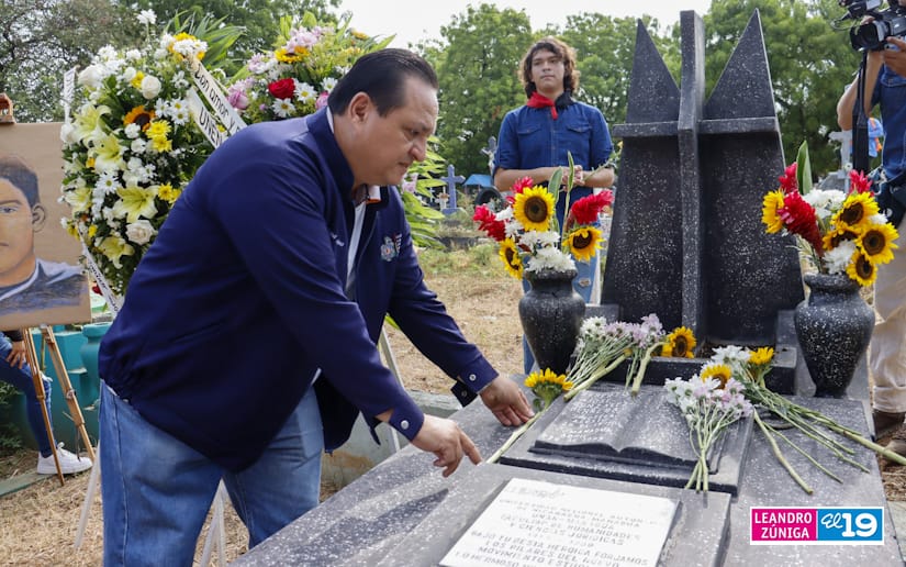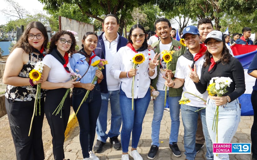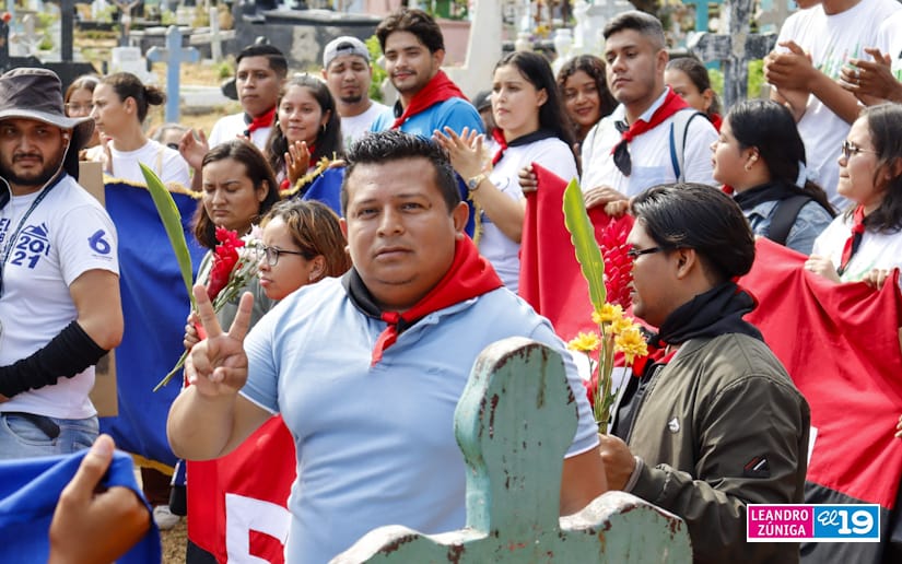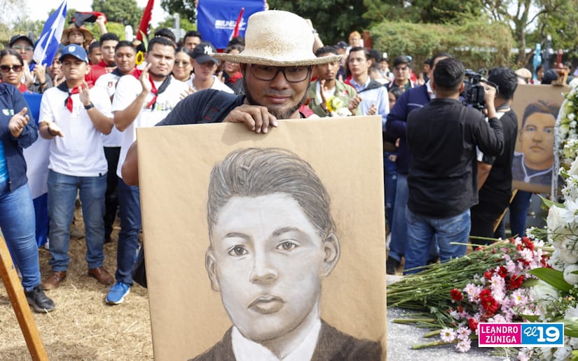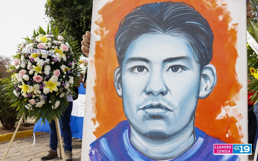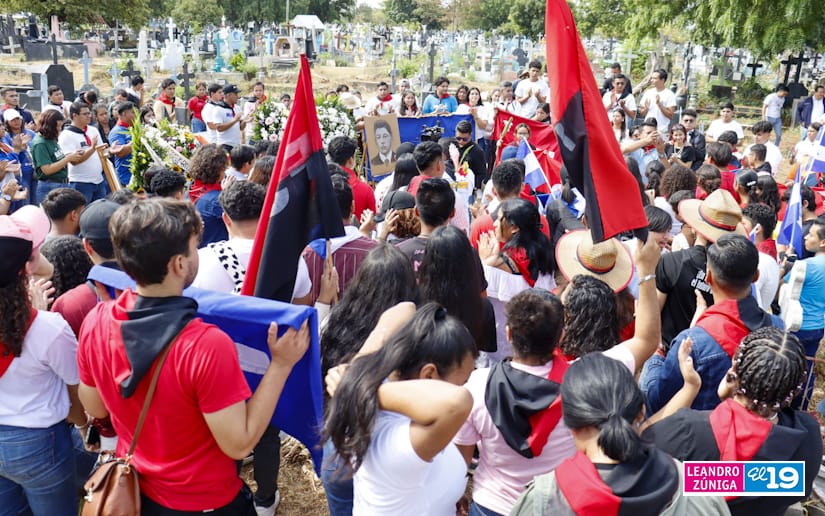 Con ofrendas florales, música y consignas revolucionarias universitarios de los recintos de la UNAN-Managua y otras universidades miembros del CNU, le rindieron homenaje y honraron su memoria.