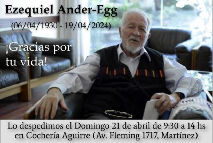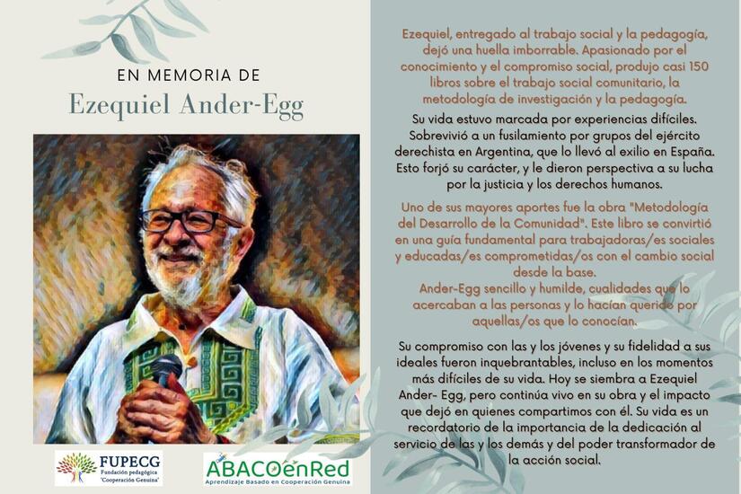 Nuestra Solidaridad con familiares y amigos ante el Tránsito a Otro Plano de Vida del Compañero Ezequiel Ander-Egg, argentino de 94 años, un grande del Trabajo Social en América Latina.