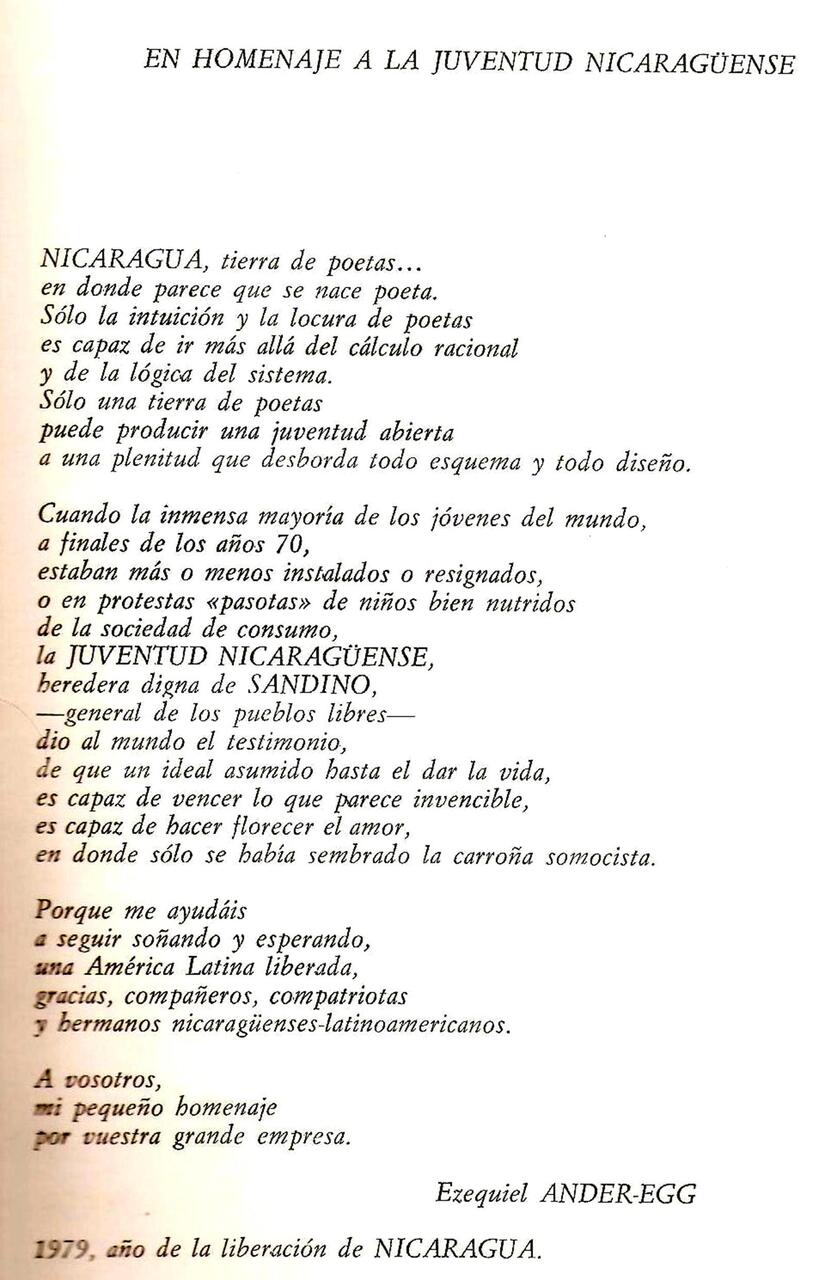 El trabajo realizado durante su vida tiene trascendencia Nuestramericana y además por ser un gran Compañero, quien vino a Nicaragua en solidaridad con la Revolución Popular Sandinista.