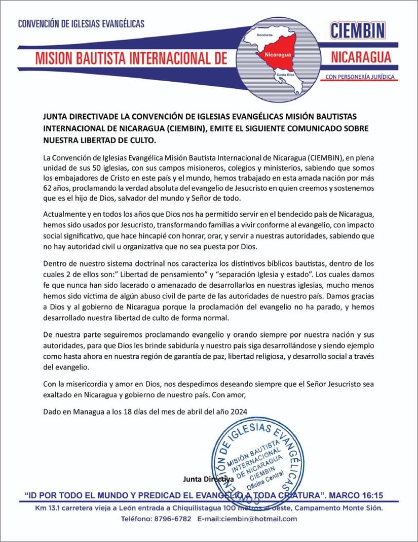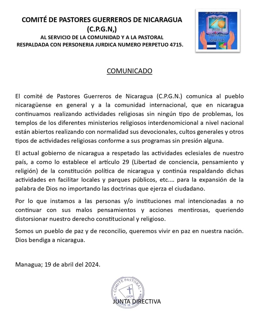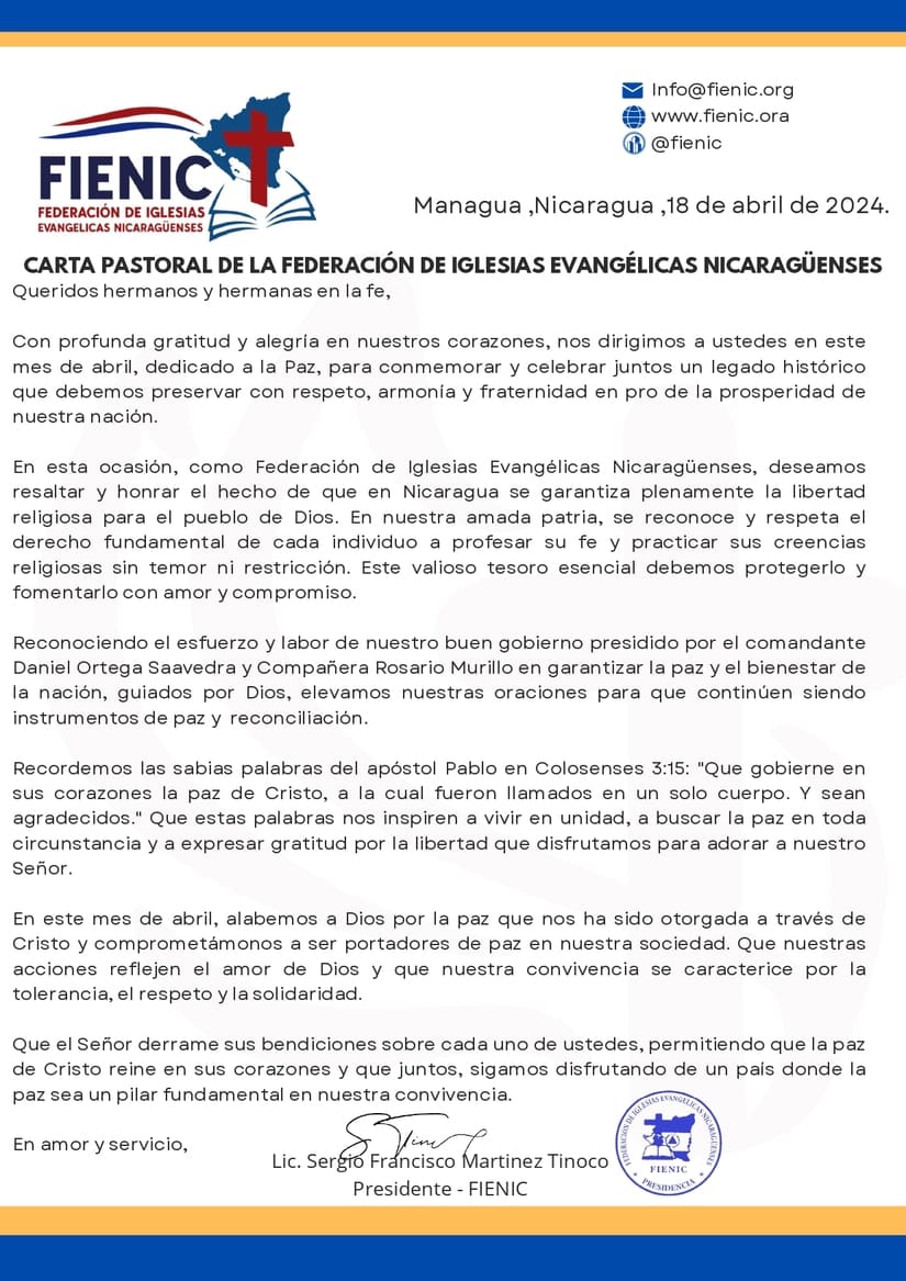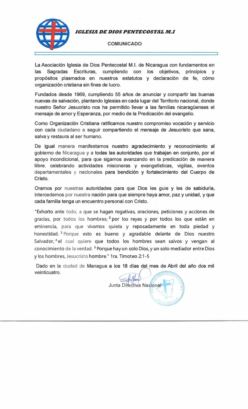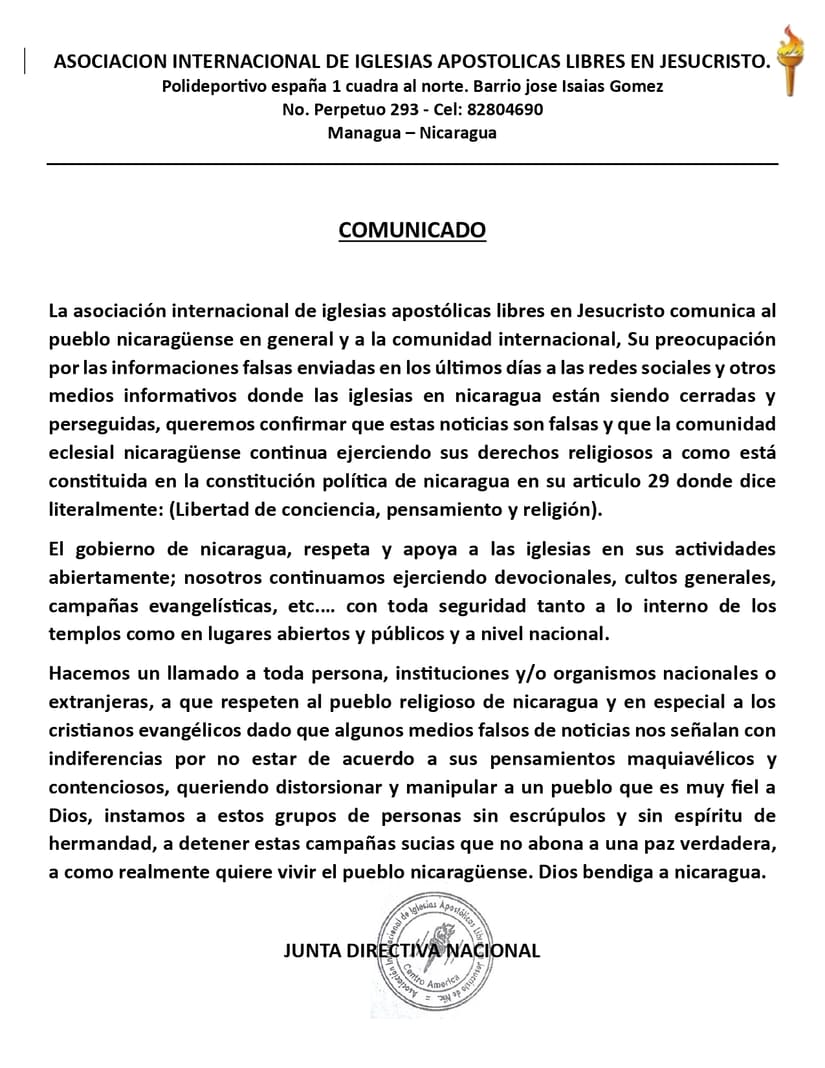 Comunicados de Iglesias Evangélicas Nicaragüenses a quienes agradecemos sus Reflexiones, y Consideraciones, en Caminos de Unidad, Fé y Esperanza...!