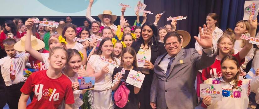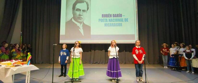 Este fin de semana se ha llevado a cabo el festival intercolegial de los países hispanohablantes en el auditorio del colegio N° 1252 Cervantes de la ciudad de Moscú, en el cuál han participado ocho colegios de la Federación de Rusia representando a los países de Nicaragua, Perú, Argentina, Colombia México, Chile y República Dominicana. Este año Nicaragua ha sido representado por el Colegio 1558 Rosalía de Castro de Moscú, con un elenco de 35 niños y ha ganado la nominación de la mejor representación del país.