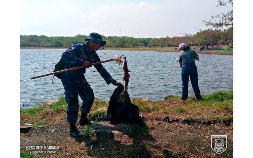 El Ejército de Nicaragua consecuente con el lema de que "Somos el Pueblo mismo uniformado, trabajando en su propio beneficio", el 19 de abril de 2024, a través de la Escuela Nacional de Sargentos "Sargento Andrés Castro" (ENSAC), en coordinación con Ministerio del Ambiente y los Recursos Naturales (MARENA), Instituto Nacional de Turismo (INTUR) y la empresa B+C Logistics S.A (Bella+Canvas), participó en la jornada ecológica en la laguna de Xiloá, municipio de Mateare, departamento de Managua.