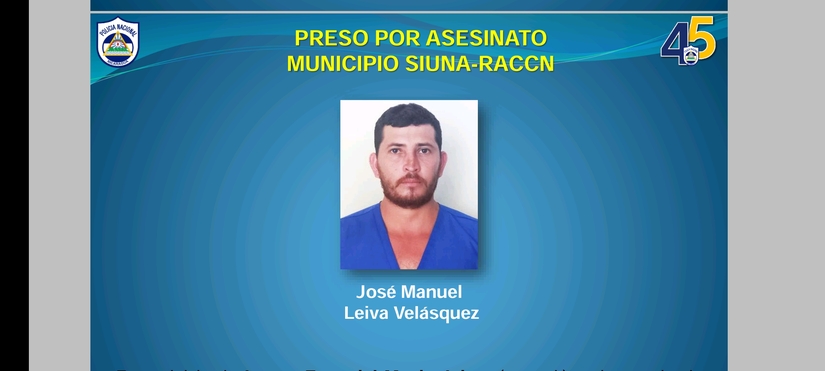 Por asesinato, en Siuna, también fue detenido José Manuel Leiva Velásquez, "que le quitó la vida a Lesther Ezequiel Martínez Avilés, motivado por el robo", detalló el alto mando.
