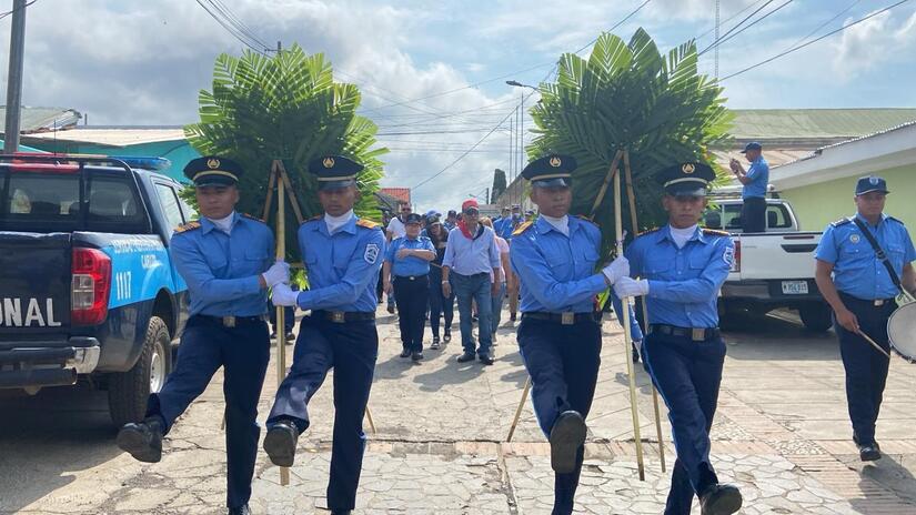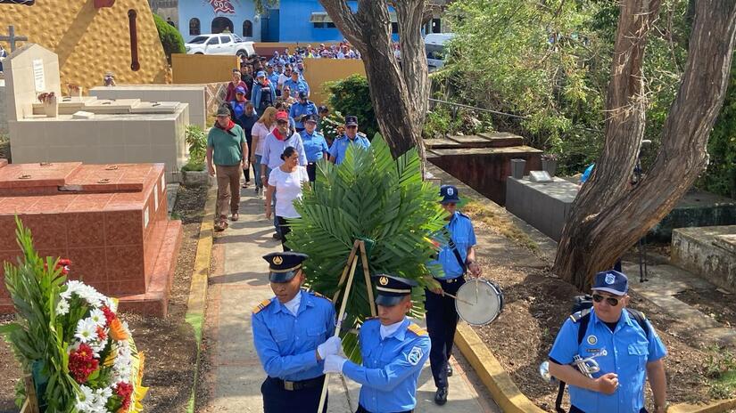 En el Municipio de Jinotepe, las Unidades de Victoria por la Paz, Policía Nacional, Ministerio del Interior, junto a familiares rindieron homenaje a la Comisionada General Juana Francisca Aguilar Cano, con entrega de ofrenda floral en el cementerio municipal, al cumplirse 6 años de su asesinato a manos de los golpistas cuando cumplía con su deber en el restablecimiento del orden y La Paz.