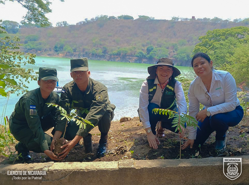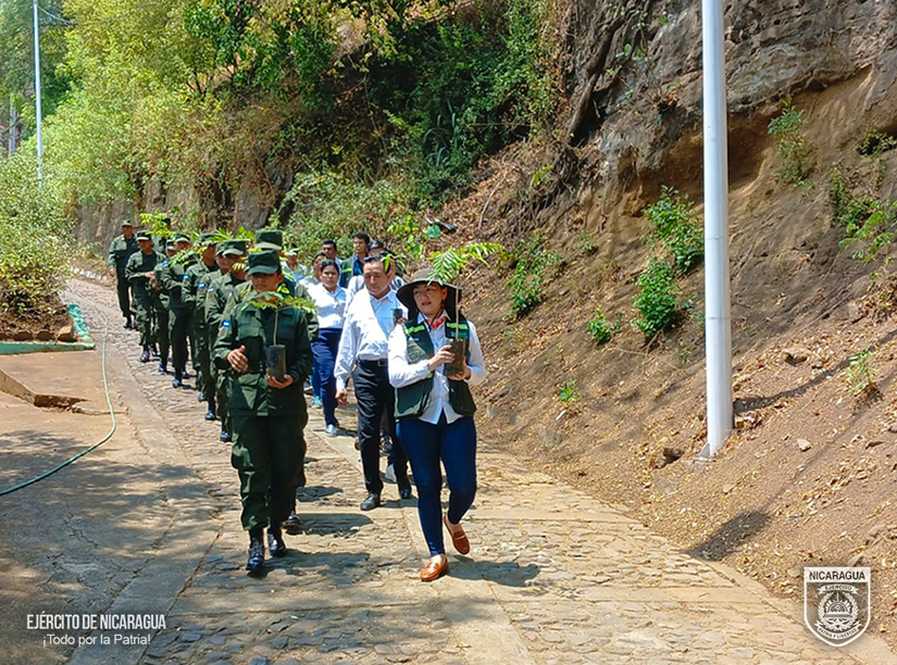 En la actividad, 20 damas y caballeros cadetes reforestaron un área de la ladera de la Reserva Natural Laguna de Tiscapa, de esta manera el Ejército de Nicaragua reafirma su compromiso y disposición de continuar sumando esfuerzo para salvaguardar la madre tierra, a través de las actividades de protección del ambiente y los recursos naturales.