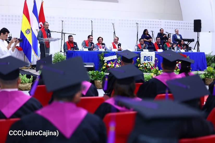 "Nuestros graduados vienen del pueblo, de los sectores populares y esto porque nuestro gobierno, nuestro Comandante Daniel y nuestra Compañera Rosario, es el gobierno del pueblo, y tiene como prioridad la inclusión de la juventud, de las mujeres, nuestros graduados vienen del pueblo, son de todas las regiones del país", destacó el director de la DGI, compañero Martín Rivas.
