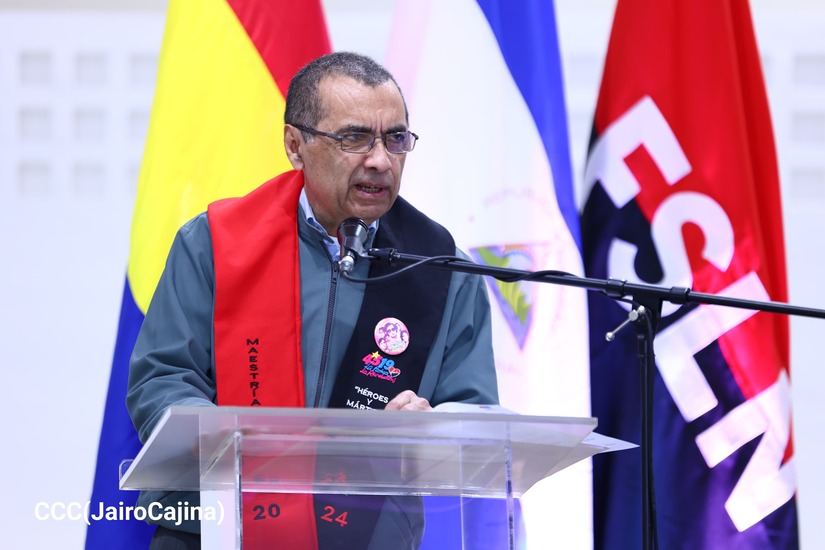 "Este momento trascendental, ya que estamos culminando con éxito sus estudios de maestrías y hoy estamos viviendo el legado que nos dejaron todos nuestros héroes y mártires que soñaron con una Nicaragua con mejores oportunidades para los jóvenes", dijo Roger Deshon Meza.