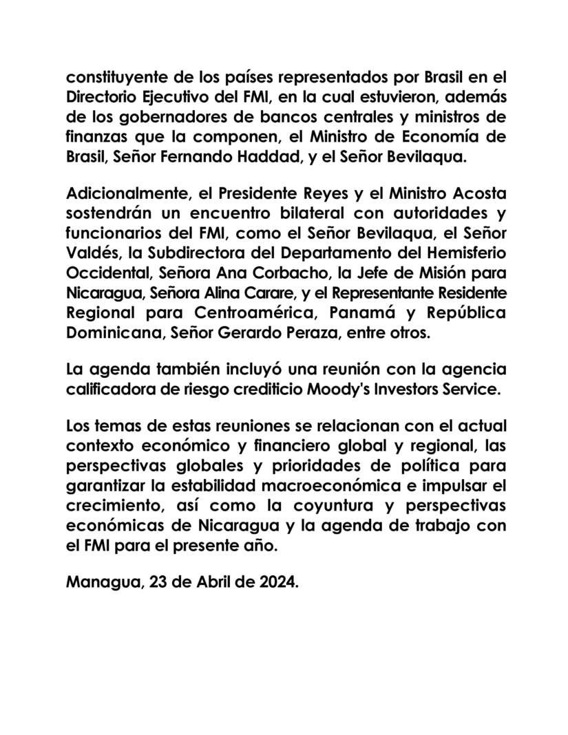 Managua, 23 de Abril de 2024.