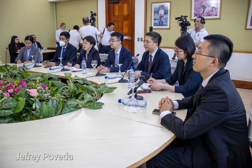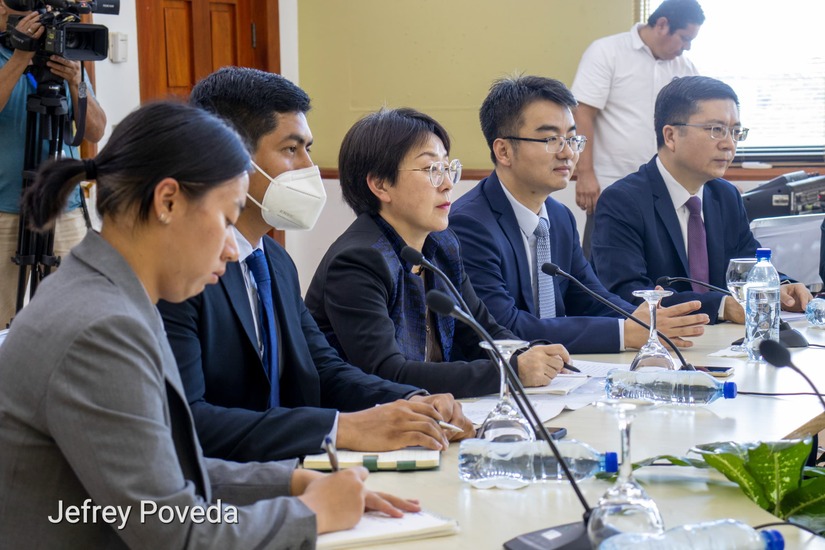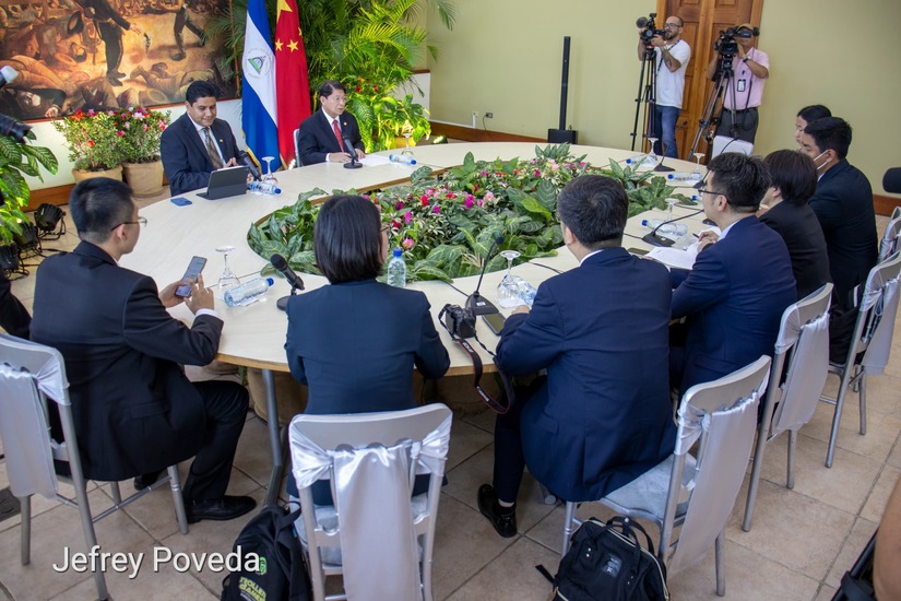 La delegación del Gobierno Popular Municipal de Nanjing de la República Popular China que está de visita en Nicaragua, sostuvo un encuentro con el Canciller Denis Moncada.
