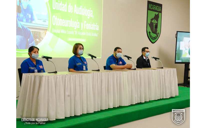 El Ejército de Nicaragua consecuente con el lema de que “Somos el Pueblo mismo uniformado trabajando en su propio beneficio”, el 25 de abril de 2024, a través del Hospital Militar Escuela “Dr. Alejandro Dávila Bolaños”, realizó la presentación de la Unidad de Audiología, Otoneurología y Foniatría, ubicada en el Edificio 1-A, especializada en el tratamiento de pacientes con problemas en discapacidad auditiva, del equilibrio y voz.