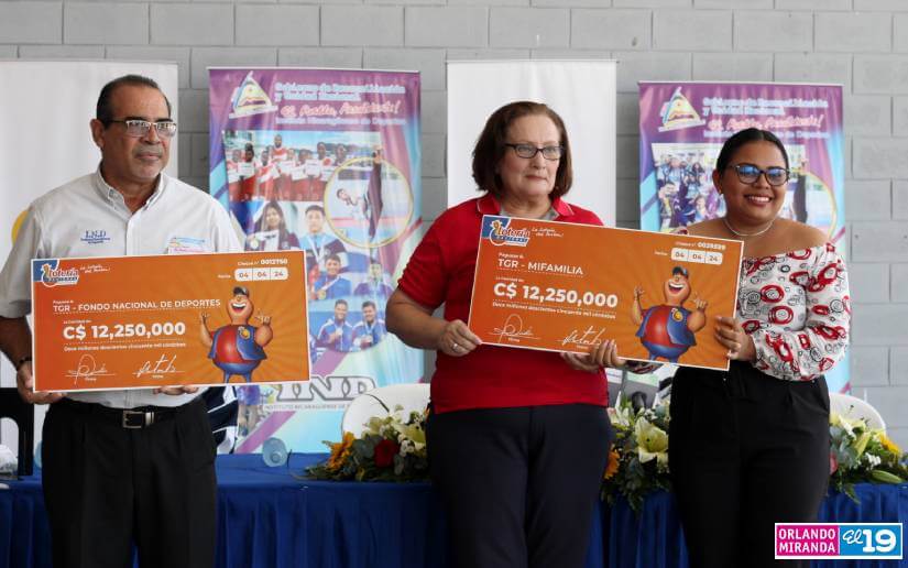 El Instituto Nicaragüense de Deportes (IND) y el Ministerio de la Familia (Mifan), recibieron este viernes de la Lotería Nacional utilidades por 12 millones 250 mil córdobas a cada institución.