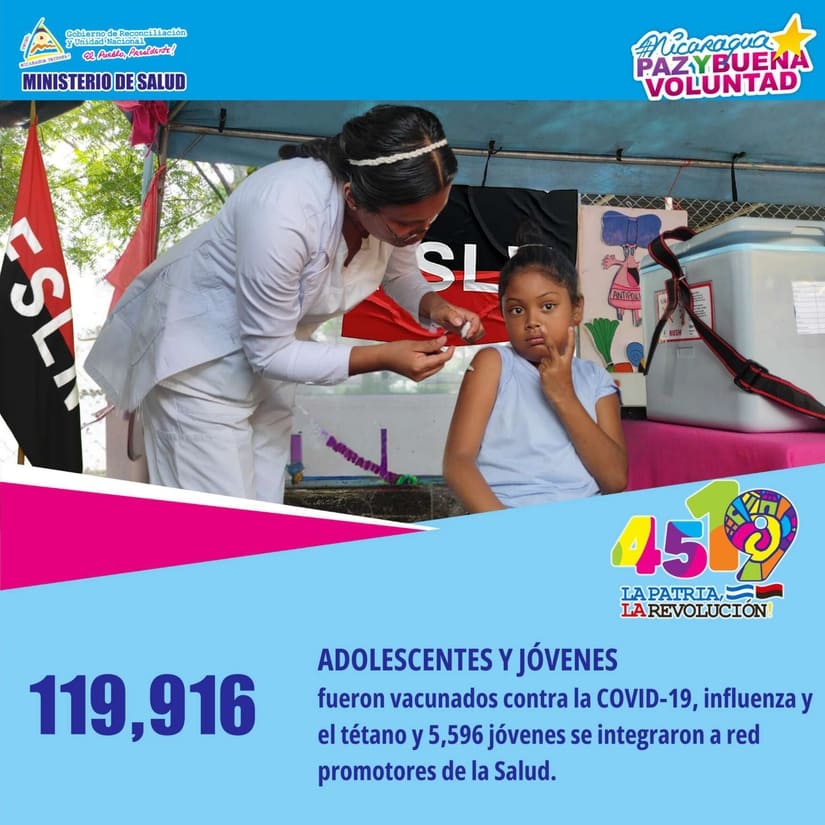 • 119,916 adolescentes y jóvenes vacunados contra la COVID-19, influenza y el tétanos.