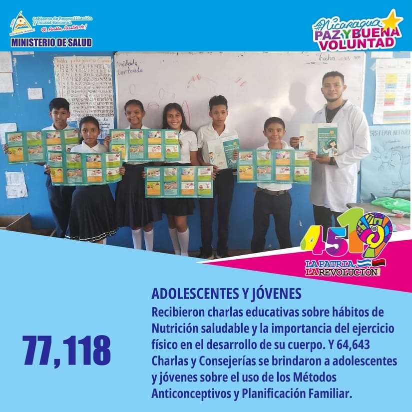 • 77,118 adolescentes y jóvenes recibieron charlas educativas sobre hábitos de Nutrición saludable y la importancia del ejercicio físico en el desarrollo de su cuerpo.