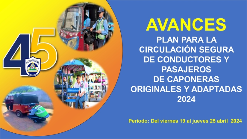 Estos son los Avances Plan para la Circulación Segura de Conductores y Pasajeros de Caponeras originales y adaptadas, período del Viernes 19 al Jueves 25 de Abril de 2024.