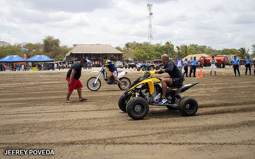 La primera competencia "Adrenalina Sobre Ruedas", en la que conductores de motocicletas y cuadraciclos se dieron cita para medir sus destrezas, fue desarrollada este domingo en la hermosa playa de Pochomil.