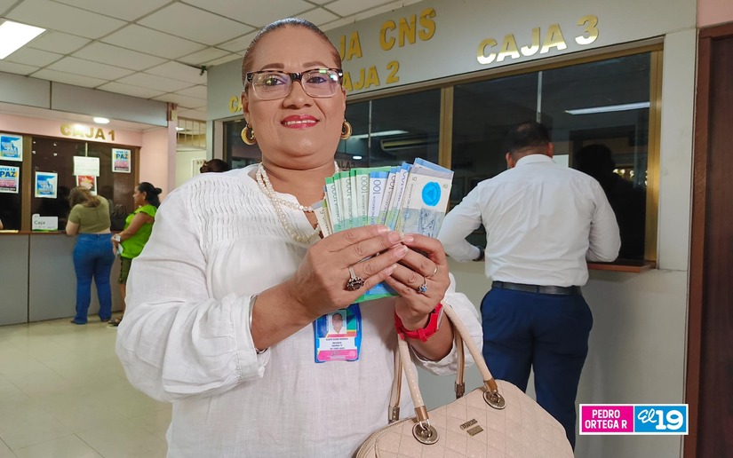 "Nuestro trabajo es una bendición de Dios y recibir nuestro salario adelantado también. Con esto nos beneficiamos todos los trabajadores no solo del estado, sino todos en general y ya viene el primero de mayo y claro que lo vamos a celebrar, además vamos a hacer nuestras compras del mes, nuestros alimentos están garantizados gracias a Dios y a nuestro Gobierno Sandinista que al garantizar paz y tranquilidad, garantizado que nuestra economía esté estable", dijo Gladys Olivas, de la Dirección de Regularización Sanitaria.