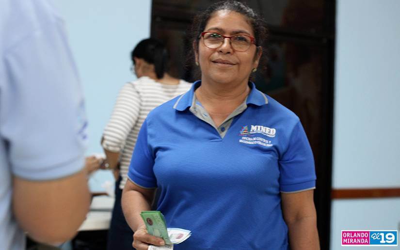 “El día de hoy, por mandato de nuestro Presidente Daniel Ortega y de la Compañera, Vicepresidenta, se está garantizando el pago de salario adelantado, correspondiente al mes de mayo, y nos vemos beneficiados todos los servidores públicos. El día de hoy todos los docentes, trabajadores administrativos del Mined estamos recibiendo nuestro salario adelantado y esto garantiza el sustento de nuestras familias durante todo el mes”, aseguró María José Bonilla, del Programa Integral de Nutrición Escolar.
