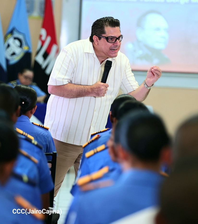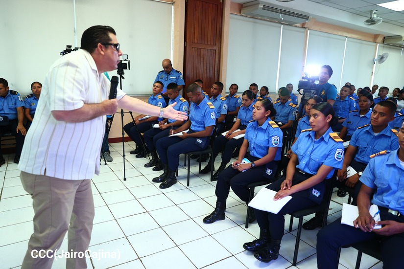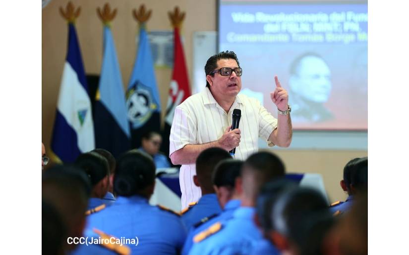 Durante su magistral conferencia, les reafirmó a los cadetes el compromiso que deben asumir con la Revolución, con la patria, la seguridad, la paz y protección del pueblo nicaragüenses, legados del Comandante Tomás Borge.