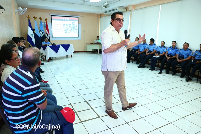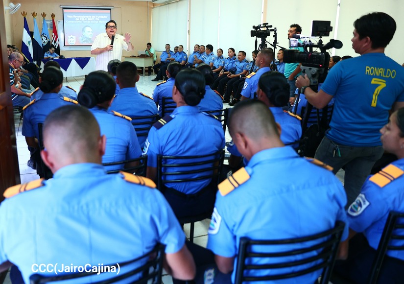 La Policía Nacional realizó una conferencia magistral sobre el legado del Comandante Tomás Borge, actividad que se llevó a cabo en la Universidad de Ciencias Policiales Leonel Rugama ¡Qué se rinda tu madre!
