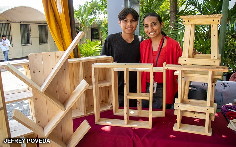 “Nuestro emprendimiento se basa en la elaboración de muebles a base de polines, elaboramos diseños propios o bien el diseño que el cliente elija, elaboramos banquitos, estantes, libreros. Este espacio que nos brinda la universidad nos ha permitido darnos a conocer y comercializar nuestros productos, ingresos que utilizamos para solventar nuestros gastos en la universidad”, manifestó Génesis Peralta, estudiante de Ingeniería Industrial.