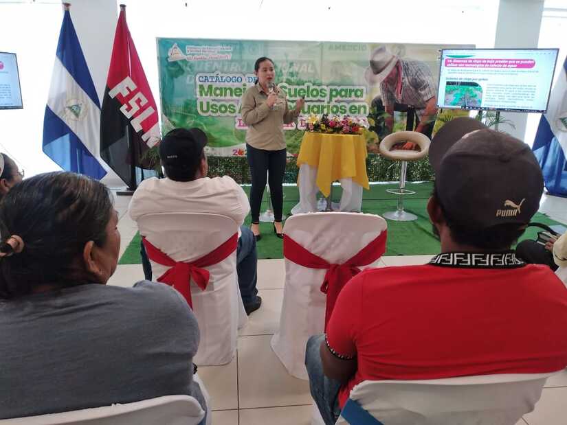 El Instituto Nicaragüense de Tecnología Agropecuaria (INTA) presentó a productores el catálogo de Manejo de suelos para uso agropecuario en la época de Primera, con el fin de que conozcan prácticas y tecnologías que puedan implementar en sus parcelas y fincas.
