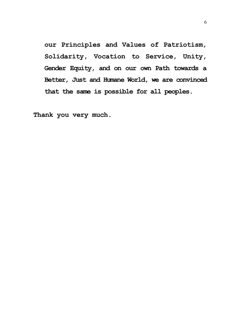 5. It is necessary to intensify commitments in the field of health and education as a fundamental human right. We need a solid and multipolar multilateralism to build more sustainable, equitable societies, without exclusions or distinctions.