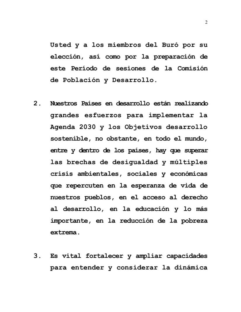 PALABRAS DE NICARAGUA 57° COMISIÓN DE POBLACIÓN Y DESARROLLO