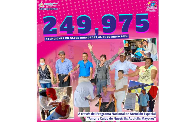 En cumplimiento al Programa Nacional de Atención Especial “Amor y Cuido de Nuestr@s Adult@s Mayores”, al 01 de Mayo de 2024 hemos brindado 249,975 Atenciones, detalladas a continuación: