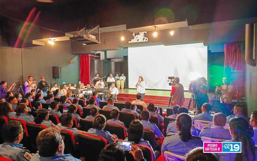 Autoridades de la Alcaldía de Managua, encabezadas por la alcaldesa Reyna Rueda y miembros de la Policía Nacional, conmemoraron en la Sala Pilar Aguirre de la Cinemateca Nacional, el 4 de Mayo, Día de la Dignidad Nacional.