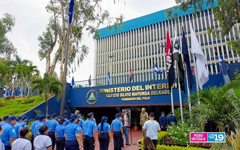 En conmemoración por el Día de la Dignidad Nacional, los servidores públicos del Ministerio del Interior y todas sus direcciones, hicieron reverencia e izado de las banderas de Nicaragua y del Frente Sandinista de Liberación Nacional (FSLN).