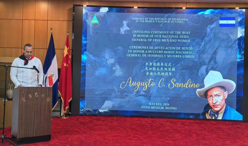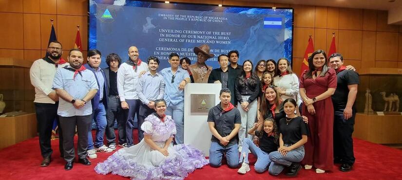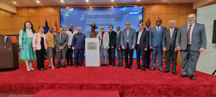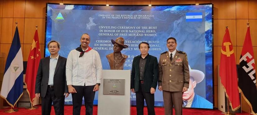En un acto solemne celebrado en el Museo de Arte de Beijing, Parque Chaoyang, con la presencia de más de 150 Embajadores, Enviados Diplomáticos, Representantes de instituciones gubernamentales, empresarios y hermanos de la Comunidad Nicaragüense en China, develamos un busto a nuestro General Sandino, elaborado por el Maestro Yuan Xikun, artista chino destacado por sus obras representativas de héroes y mártires de Latinoamérica y el Caribe.