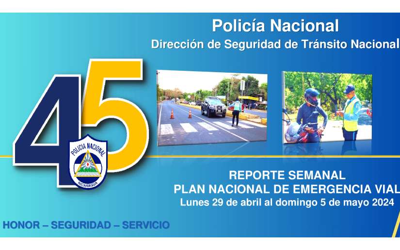 La Policía Nacional dio a conocer el reporte semanal del Plan de Emergencia Vial comprendido entre el 29 de abril y 5 de mayo, en el que se registran los resultados del trabajo interinstitucional y la campaña "Salvá tu vida".