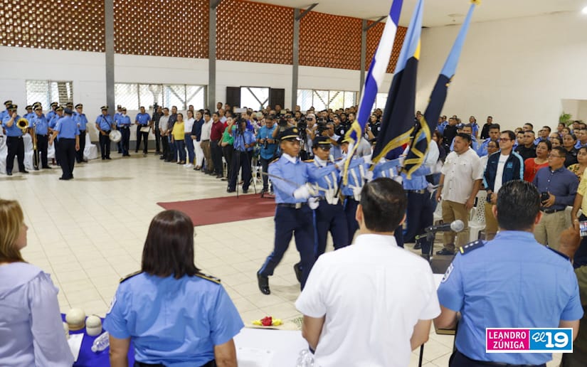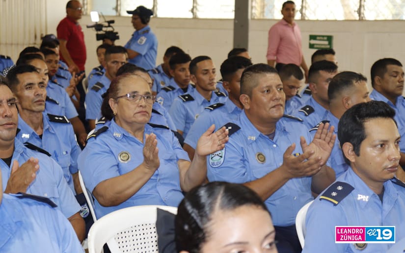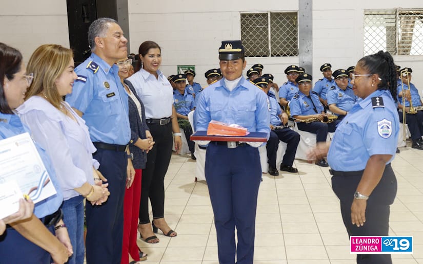 Dijo que estos efectivos policiales luego que se bachilleran pueden seguir preparándose “porque ahí tenemos la escuelita de carreras técnicas Angelita Morales Avilés, la Universidad de Ciencias Policiales Leonel Rugama ¡Qué se rinda tu madre!, y la Universidad de Ciencias Médicas Julio Briceño Dávila”.