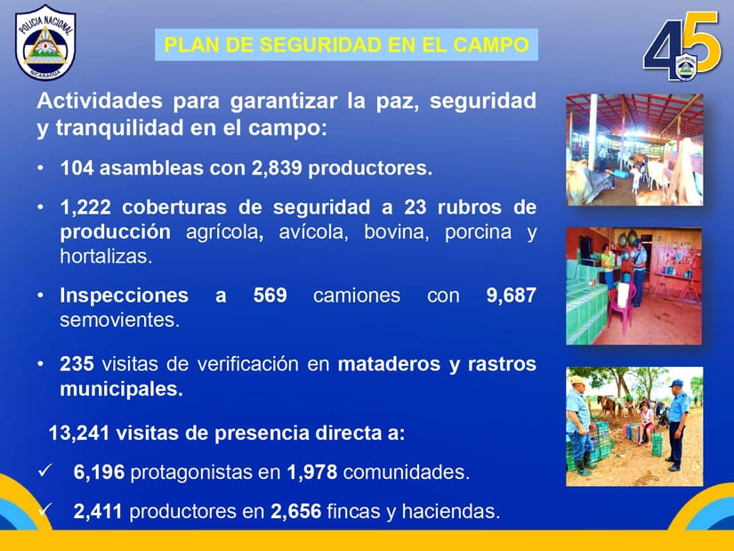 Con respecto a la realización de actividades para garantizar la paz, la seguridad y tranquilidad en el campo, se llevaron a cabo 104 asambleas con la participación de 2 mil 839 productores.